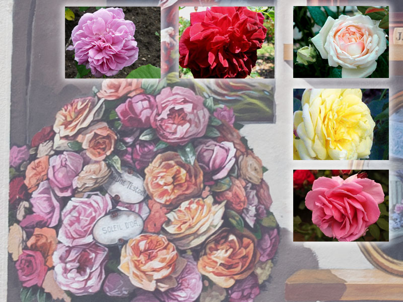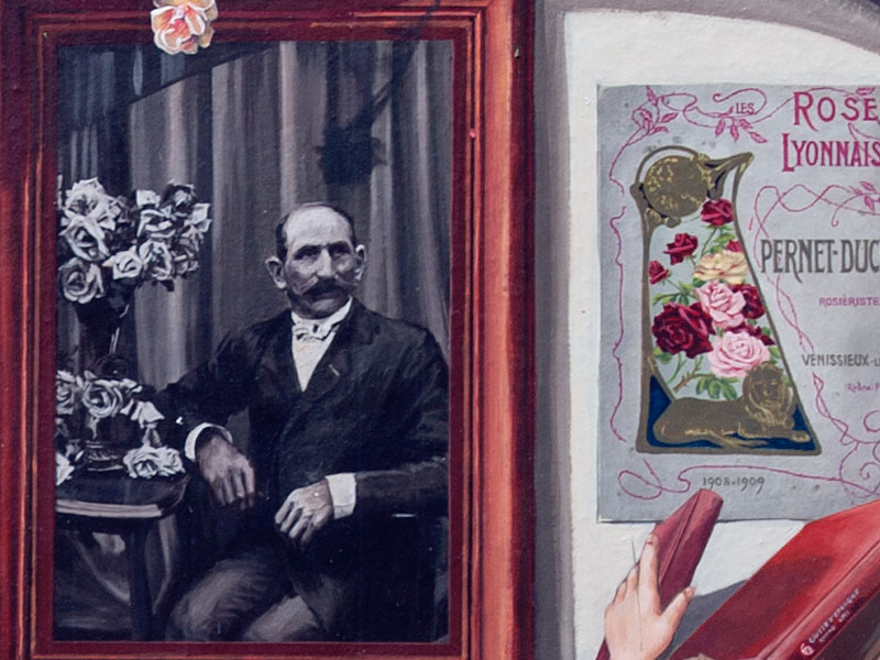 L'association Roses Anciennes en France a initié le projet de fresques en hommage aux rosiéristes lyonnais du XIX° siècle, et a collaboré activement avec les muralistes de CitéCréation qui en ont assuré les réalisations. Les 3 arches au bas de la fresque des roses ont été conçues comme une bibliothèque historique.
