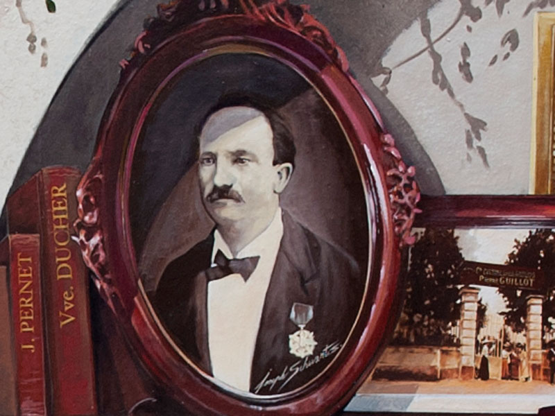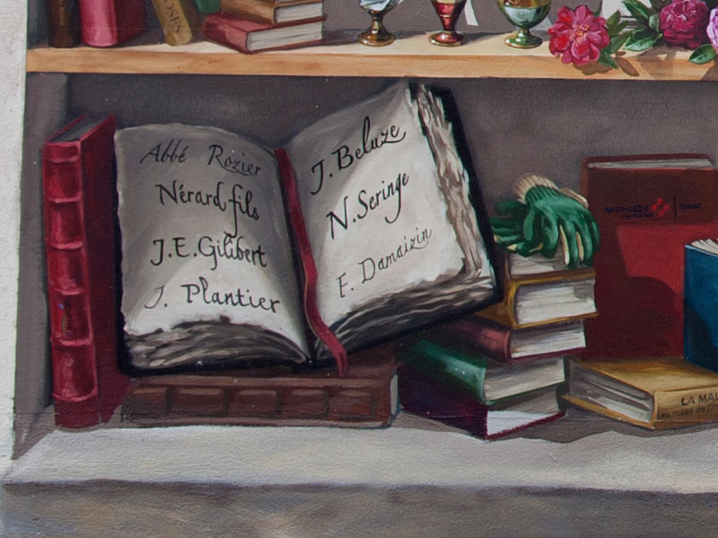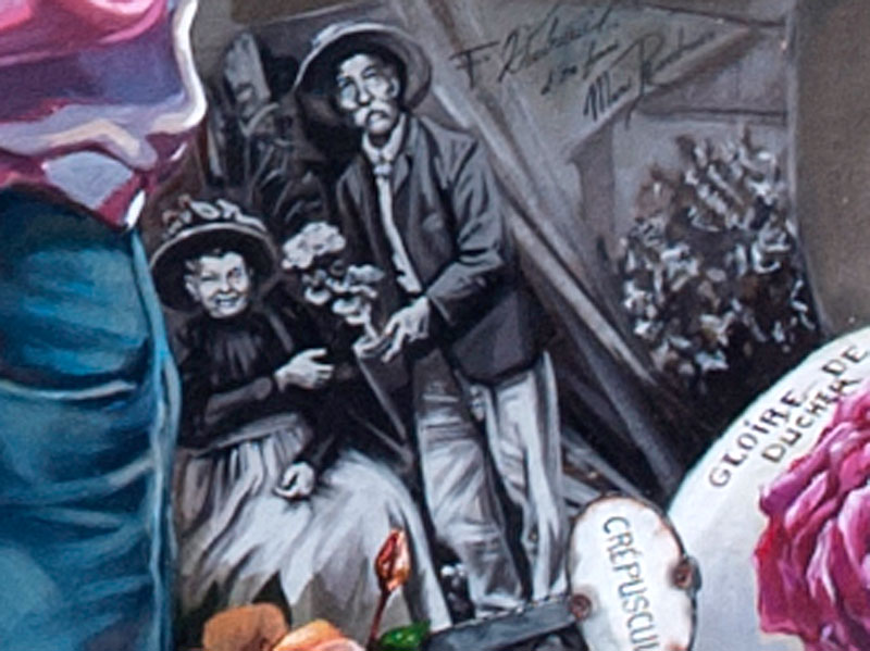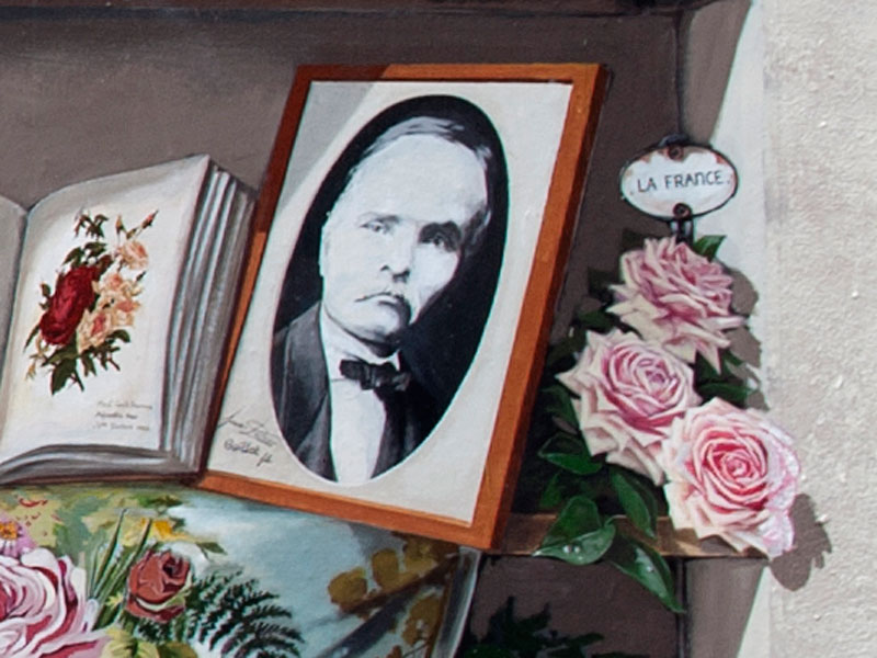 L'association Roses Anciennes en France a initié le projet de fresques en hommage aux rosiéristes lyonnais du XIX° siècle, et a collaboré activement avec les muralistes de CitéCréation qui en ont assuré les réalisations. Les 3 arches au bas de la fresque des roses ont été conçues comme une bibliothèque historique.
